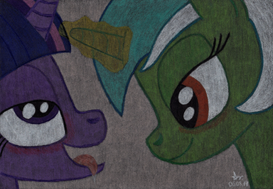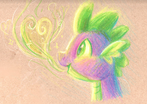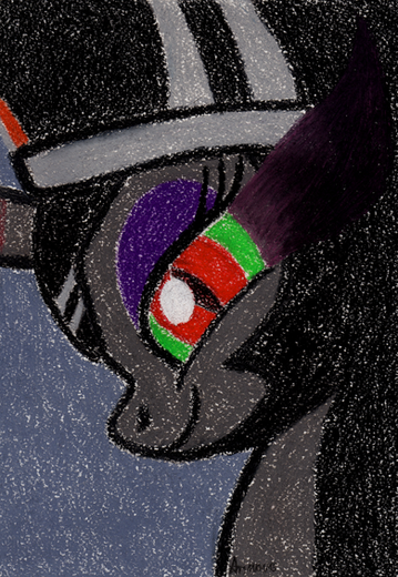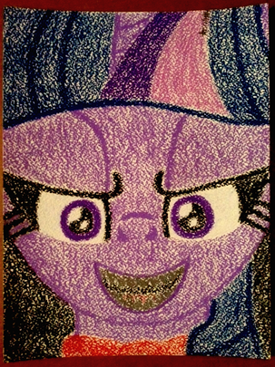 Здесь можно увидеть смесь пастели с применением закрепляющего спрея, фиксатива, (это тёмные зернистые участки рисунка) и оригинальное нанесение пастели (сплошной светлый цвет тела).