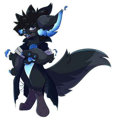 Canine Ears | Normal Eyes | Standard Snout | Long Floof Tail | Neckwarmer Fluff | Glow ★, Elemental Power (Blue Energy) ★