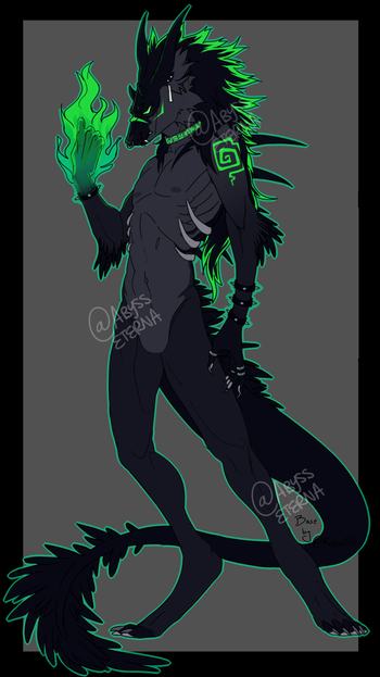 Big Ears | Multicolored Eyes | Standard Snout | Demon Tail ★ | Hood Fluff ★, Tuxedo Fluff ★ | Mythical Body ★★, MineRashy ★, Glow ★
