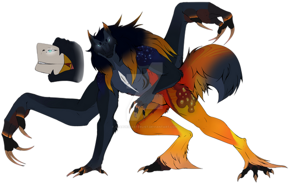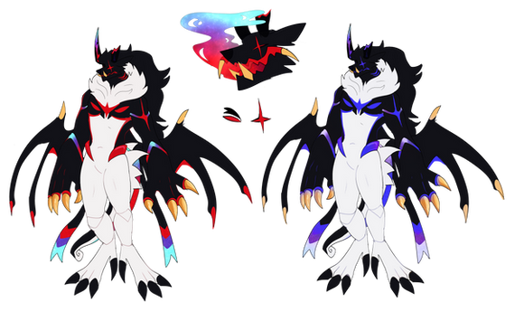 Big Ears | Shaped Eyes (horned skull) | Cannibal Snout | Demon Tail ★ | Neckwarmer Fluff, Hood Fluff ★, Tuxedo Fluff ★ | Celestial Rashy ★★, Floaty Crown ★, Satan Horns ★, Forked Tongue