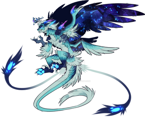 Big Ears | Multicolored Eyes | Standard Snout | Snek Tail (Dragon Variant) ★ | Hood Fluff ★ | Celestial Rash-Rye ★★, Mythical Body ★★, Horns, Sparkle