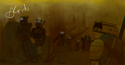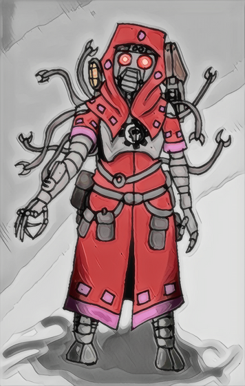 The leader of the Zameeni skitarii legion, Raker personally often sticks with the 10th Zameeni Combat Servicemen, and is a good friend of Commander Afridi.A big man of at least 7'7", and with a level of combat prowess unmatched by other skitarii, this Alpha is lean, mean, tough, and rough but his augmentations allow the part of his brain that make decisions and strategy and tactics to remain calm, so he can effectively command his underlings. Though often aggressive and ready for a fight, he can let out his human side time and again to those who either earn his respect, or to those who need it.