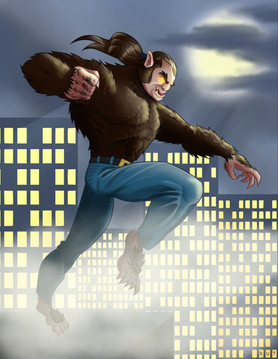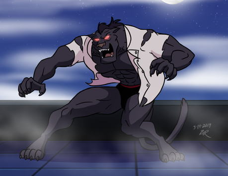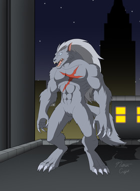 Commission for AnthroMan106 of his werewolf OC, Shadowclaw looking badass under a full moon!