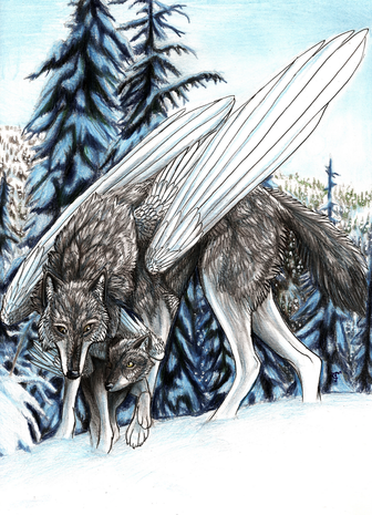 Self-explanatory, wolves with wings. Overall, it was a pretty fun and quick drawing.Pencil