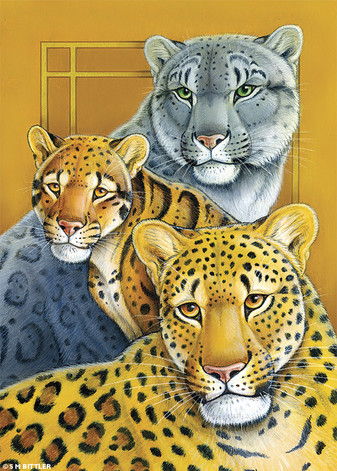 As for the actual artwork, one major part I am drawn to is the expressions on the animals faces; the Caspian Tiger and the Taiwan Clouded Leopard mainly. The feeling that the Caspian Tiger must have is one of struggle or confusion. Whereas the Taiwan Clouded Leopard seems to be bewildered at the situation and the innocence of this particular animal is clearly shown. Finally discussing the Barbary Lion, it appears if he is looking directly at the viewer, possibly portraying that us, as humans, should be to blame for these animal's demise.