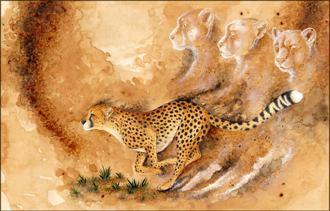 I am always saddened by the thought of big cat extinction, As for what I think, I think the chains represent humans trying to kill them and kill them all, The light is their fear but they stay strong and keep going,