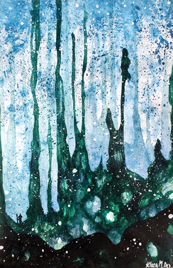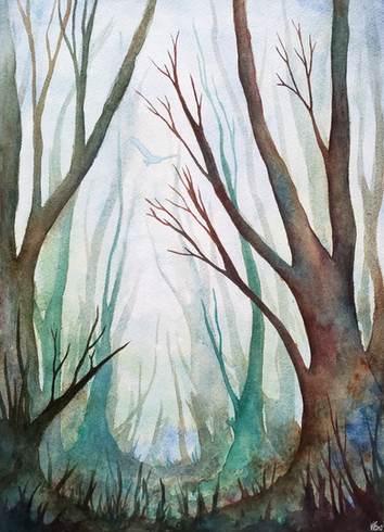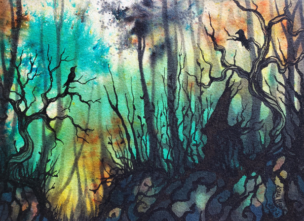#darkforest #fireflies #forest #gouache #mistyforest #mixedmedia #mixedmediaart #mystical #nature #naturepainting #spooky #spookyforest #traditionalartist #trees #watercolor #witch #woods #brusho #mysticalpainting #poscapen #forestpainting #naturecreature #fantasyart #traditionalart