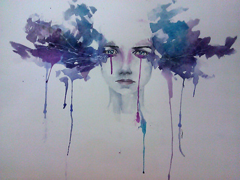 #blue #face #gray #purple #surreal #white #portrait #selfportrait #traditionalart #violett #watercolor #watercolorpainting