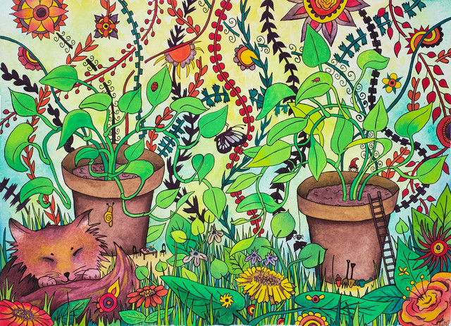 Oh and the paper I used is RickMalArt 's wonderful home made paper, which gives the drawing a nice texture and adds those cute little pink dots