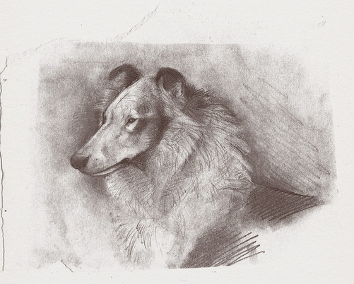 It's a drawing of my families dog when I was growing up. His name was Daniel and he was a collie and an absolute sweetheart. Although he's been dead for over ten years, I still miss him very much!