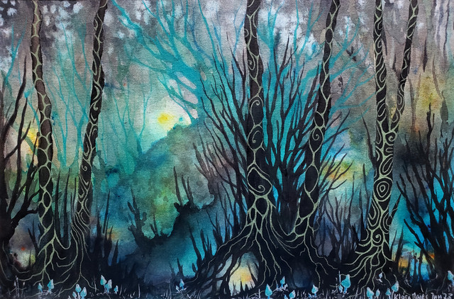 #forest #fukurou #mistyforest #mystical #owl #painting #trees #watercolor #watercolorpainting #woods #inspiredbymusic #inspiredbykokia #forestlandscape #mysticalforest #traditionalart #traditionalartist