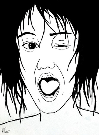 #blackandwhite #crazy #face #hair #ink #shadows #woman #androgynous #portrait #traditionalart