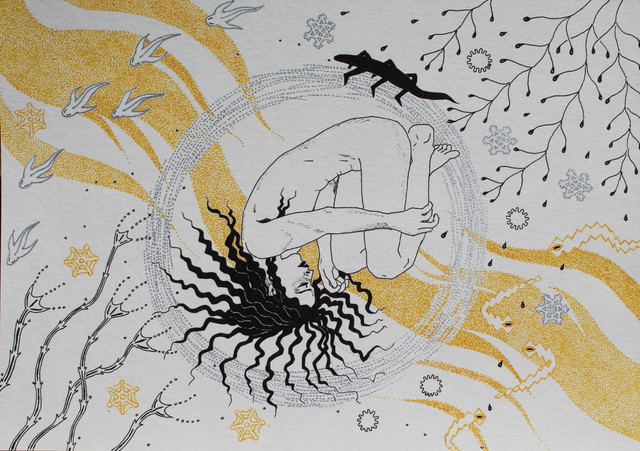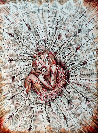 #coloredpencils #colorfulart #detailedart #emotionalart #ink #mixedmediaart #surrealart #traditionalart #traditionalartist #workinprogress #brusho #wipart