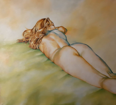 It looks like the wall facing her was red or orange. Beautiful, again..love that hair and those creases, so discreete but just enough to tell the viewer what he's looking at. And the body, well, fabulous as usual