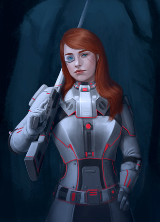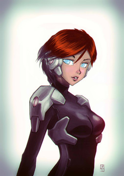 #android #girl #hair #red #scifi
