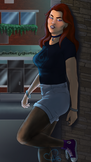 Also, I have a few other comic ideas. One of her future companion Damien, and one that explains the 101 band on her thigh.
