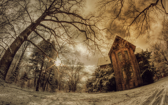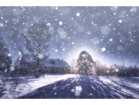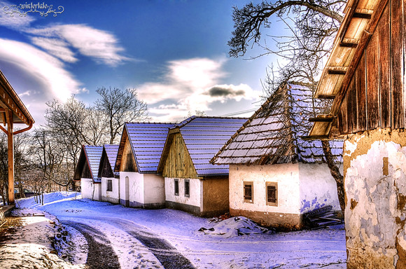 great capture! i love the stark coldness of the snow and the bright sun compared with the warm home-i-ness of the little cotteges.
