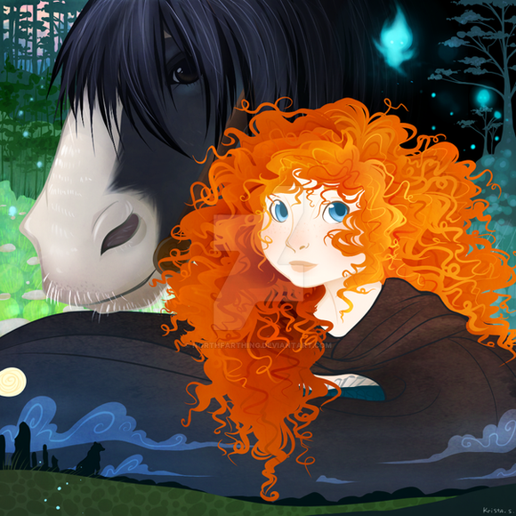 Absolutley gorgeous: With the pose of both characters and Merida's expression, you've capture her spirit quite nicely. I also love the way the whisps grow surrounds her. Stunning!