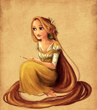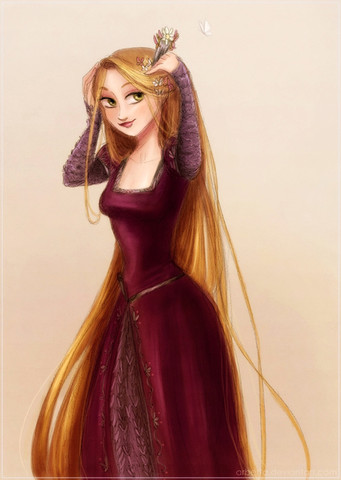 Me encantan el vestido, el pelo y la postura. Rapunzel tiene un aire mucho menos infantil (y más melancólico) que en la película, y aunque Enredados me gustó muchísimo, me pregunto cómo habría quedado el asunto si lo hubieran hecho desde esta perspectiva.