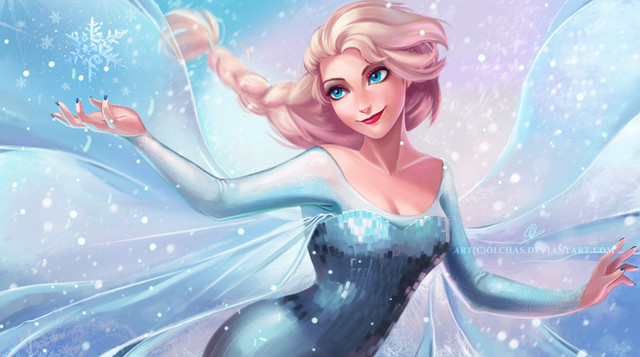 It seems like the famous Disney design for Elsa in Frozen is not confirmed yet but it is, indeed, very probable. I couldn’t help it and tried to draw her based on the "fake" poster and some concept art we got in the past days. I still don't like this version very much, that's why I made her a little evil (because I love evil gurlsOh, and I hope you like it
