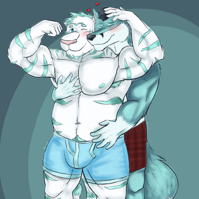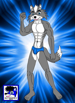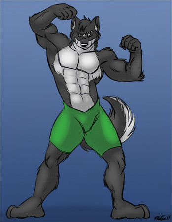 Wow, a big wolf flexing his muscles in his undies! Pretty awesome work! Β