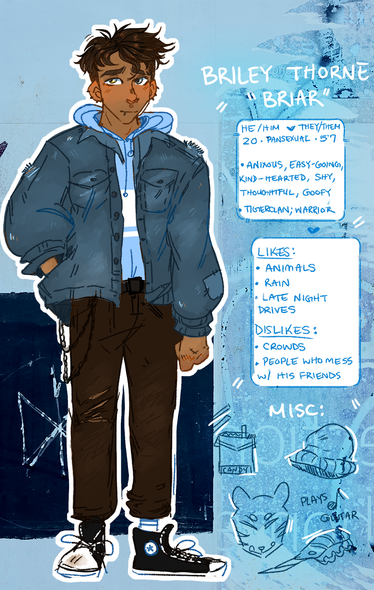 Hands down sloppiest ref ever, what but whatever it works for now ohoho. Clay is my southern pup whos a farm dog! He likes rain showers, mud and sheep. But best of all he loves hanging out with his best pal and brother Cobalt !! He's got a ridiculous amount of optimism and puns. But he's super shy around the ladies though ;o; save him