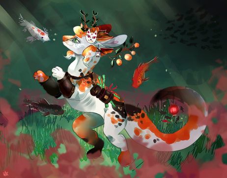 #cat #catcharacter #colorful #digitialpainting #environment #flowers #koi #koipond #painting #pond #summer #sunshine #water #waterfall #yelllow #sunsetshimmer