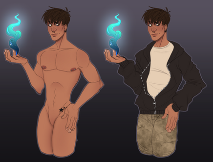 Some studies I did to show about how the point of separation would look like when Tychus detaches somewhere. I'm not entirely sold on the glow effect but I think it helps denote the magical nature of the change.Usually all it takes to remove a piece from Ty -- when he's not actively opposing it -- is a forceful tug, at which point the part in question will just cleanly pop right off. Tychus experiences no pain from the process, and actually describes it as 'warm' and 'pleasant'. Ty is still able to move his pieces remotely, regardless of distance, and is able to somehow perceive things in the nearby area through them.