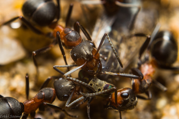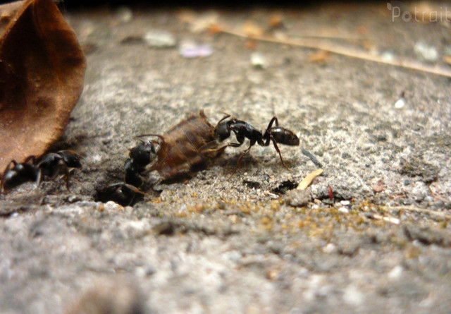 "Posiłki! Sprowadzić posiłki!''Cóż to za wojowniczy naród! Mało opony rowerowej nie ugryzły. A i na sznurowadłach miałam kilku pasażerów na gapę - wczepić się żuwaczkami we włókna to było komu, odczepić się już nie. Ze statywem to samo. Z drugiej strony chyba się nie dziwię - pewnie nie chciały, żeby ta zbrodnia, którą właśnie pokazuję, stała się sławna, wypowiedziały mi wojnę.
