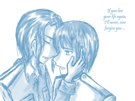 Ooooh...the grey-scale is kind of a new style for you but I like it! I also really like the simplistic background...it keeps focus on what's important in the scene! Great job!