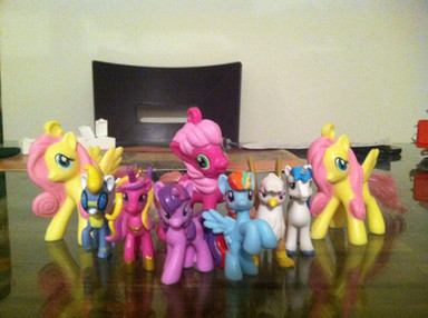 got a few extra (besides these) so there not included, as for new got (all wave 8) fluttershy, big mac, twilight, Applejack, gilda, Lotus, and pinkie. still need flam & granny smith as for the well known and if i can avoid going broke carrot top and fyre flye (golden harvest & sassa flash)