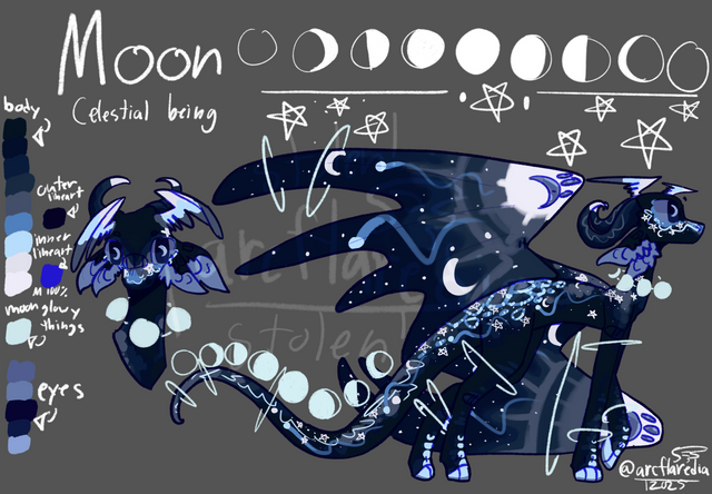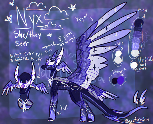 Adopt by NotQuiteADragon they designed the bust and I designed the restOrpheus is a Night/Ice hybrid. He likes to collect fallen stars and other space rocks. Orpheus’ eyes and moons on his wings change depending on the moons that night. He’s not evil just looks kinda creepy. Orpheus is actually really nice and has friends but prefers to be alone. His skull is made out of space rock and so are his other adornments besides the stars. Orpheus’ parents left him close to the old night kingdom(the one Darkstalker used to live in) on a grassy plane. He was born on the brightest night but doesn’t like to use his powers that much.