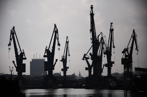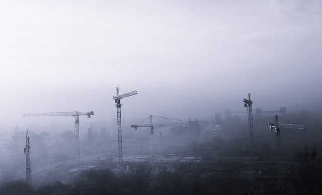 Well, this is quite haunting.. I really like how certain cranes are more focused, but they still blend in. Hard to describe