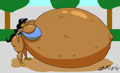 This is ridiculously cute. I adore her expression, and the way she's sinking into her own ballooning mass, while simultaneously filling the nearly the whole frame. She certainly seems to be enjoying herself.