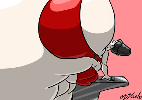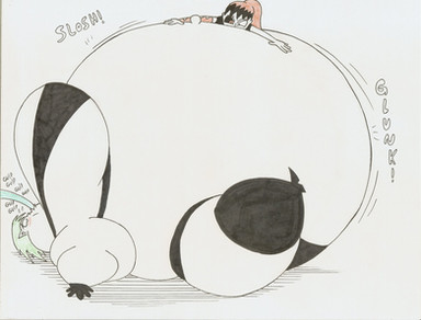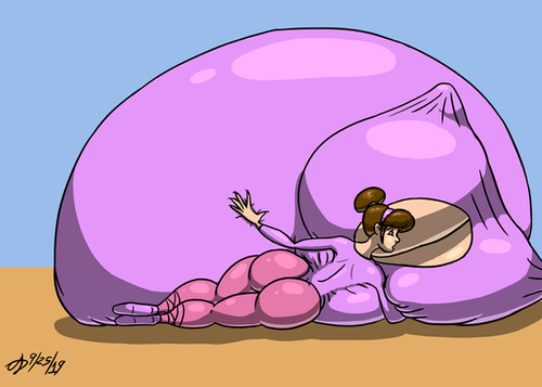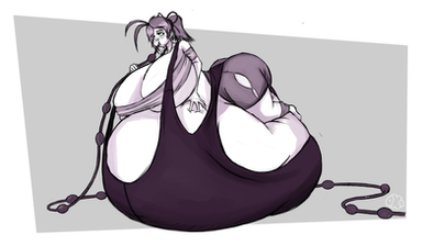 The grey color scheme works beautifully here, and - as always - I'm really digging the leaning-back pose. I like how she's being overwhelmed by her own ballooning physique. It really drives home just how HUGE she's getting.