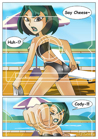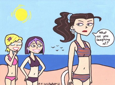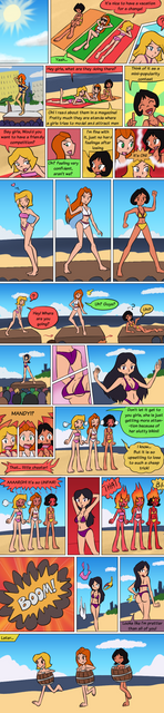 Nice! I like Starfire's swimsuit especially! Who's the girl in the middle?