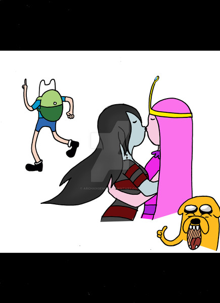 Who's he about to kiss? Bubblegum or Flame Princess?