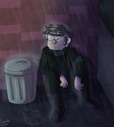 "Poor Stan he's probably hungry." Ford said rubbing his own stomach. *sigh* why do I even feel sorry for him. It's his fault he got kicked out of the house, his fault he's not welcome back till he makes back my fortune. Well that would take a very long time. Ughhhhhh why am I even worried about it. *because he's your brother you should care about him.* well I don't it's his fault. *but he's all alone trying to strive for survival, food, and warmth.* *sigh*. Ford just covered up and tried to sleep. Hopefully his mind would straighten itself out and realize that stanly is on his own because of what he did.