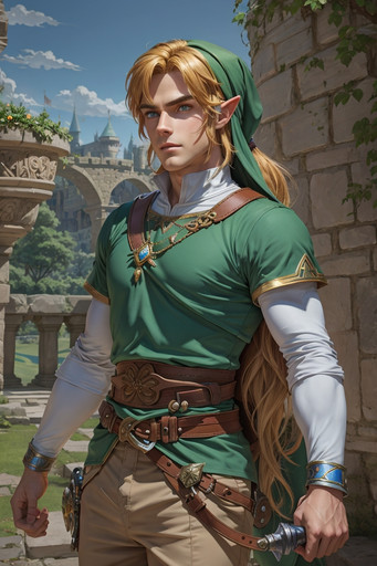 I've decided this is going to be "Fan Art Weekend!". Over the next two days, I'll be uploading some of my attempts to get Stable Diffusion to draw some of my favorite characters in a semi-realistic and beautiful style...First up for Fan Art Weekend, it's Nintendo's eternal heroic twink, Link! Fearless, handsome, heroic... and responsible for a generation of young boys realizing that they weren't entirely straight.