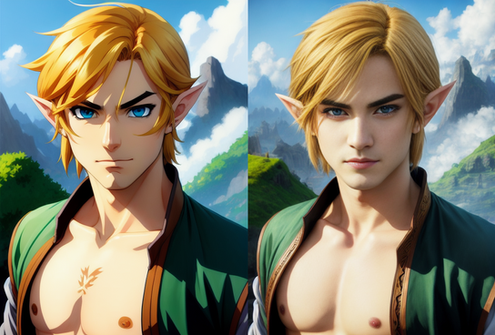I've decided this is going to be "Fan Art Weekend!". Over the next two days, I'll be uploading some of my attempts to get Stable Diffusion to draw some of my favorite characters in a semi-realistic and beautiful style...First up for Fan Art Weekend, it's Nintendo's eternal heroic twink, Link! Fearless, handsome, heroic... and responsible for a generation of young boys realizing that they weren't entirely straight.