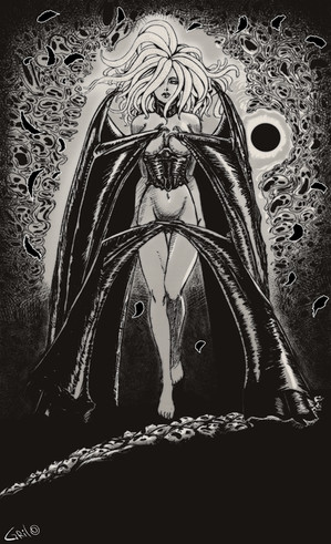 This character from manga "Berserk" by Kentaro Miura.Slan - the female member of the God Hand.