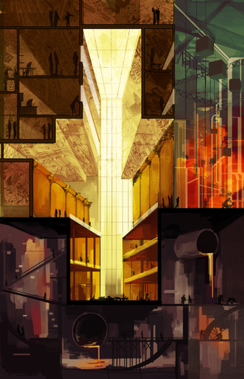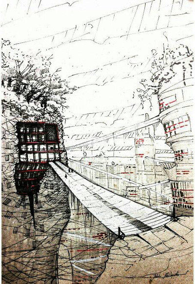 Was drawn in pen, rendered with watercolour paints and photoshop.