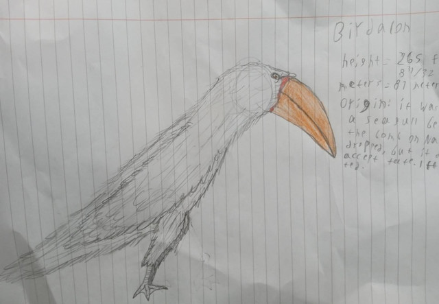 This large drake is the biggest flying animal on Chascher, reaching up to 7.5m long, with a wingspan of up to 8m. It's wingspan seems short compared to the animals size because, like all* quadaves, it has four wings. It also has lots of air sacs in it's body, and its large beak is mostly hollow.The King Drake is an apex predator and scavenger. A lot of the time, it can just bully a smaller predator off its kill, but if for some reason it wants fresh meat, it swoops down its prey, usually goat-to-horse sized animals, and slams into it with its open jaws, biting down, and carrying it off. If the prey is still somehow alive, it'll drop it onto the ground, from around 150m, then fly down and retrieve the battered mess. They're also monogamous, so sometimes if a prey item is too big, the male and the female will each grab and end and yank it in two, then fly back to the the nest, with each one holding half and animal.