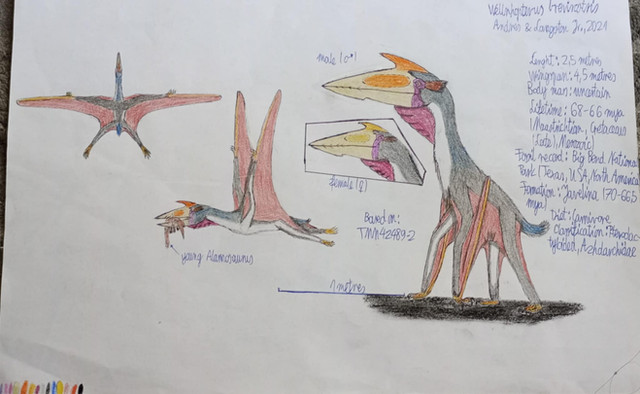 Very fearsome looking, and I like the colours too. I was going to mention that the keels/crests on the creatures beak may hinder its maneuverability if it were to turn its head during flight ( that could have some fairly devastating effects ) but I'm not so sure anymore, they seem a little too small to have a large effect on the animals flying.