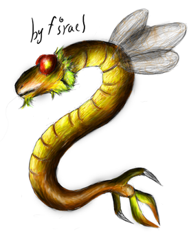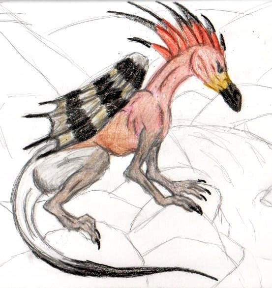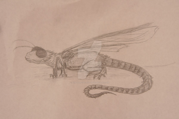 This flyer is a nectavore, specializing in a flower with bifurcated nectar tubes evolved around the flyers split tongue needed to smell. The body is covered in a fuzzy iridescent coat. This coat can be fluffed up, and can be used to attract mates and intimidate rivals.