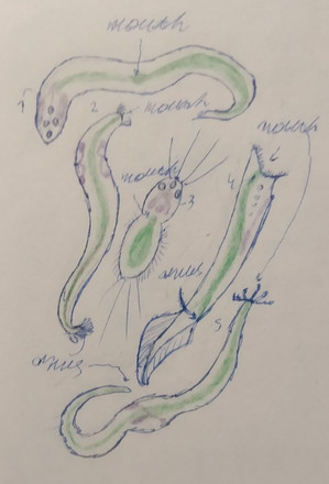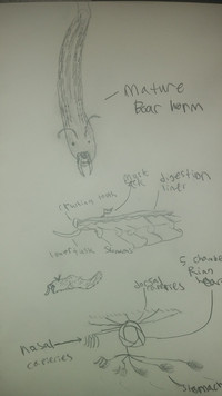 Tube jellies are a group of simple animals that live in the Chascher seas and fill a niche similar to jelly fish. Instead of having a brain, they have a network of nerves spread around their body. Most of the time they use their cilia to move around and feed at them same time, but if they're startled, they'll contract their bodies and shoot forwards. Tube jellies come in all shapes and sizes, from microscopic to enormous, and squat and fat to long and thin.Related content