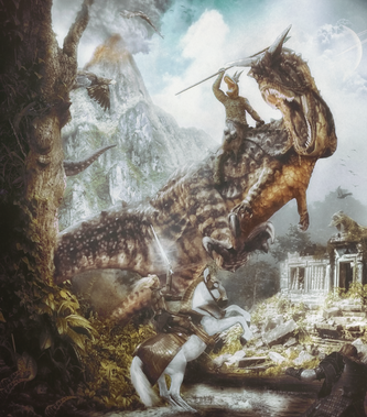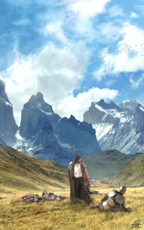 New photo manipulation used for a personal story. Here, two of the main characters are traveling toward Brèche, a new city built close to the mounts.Stocks used: