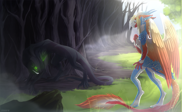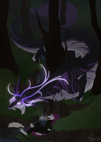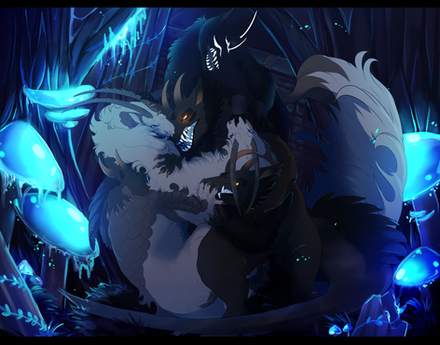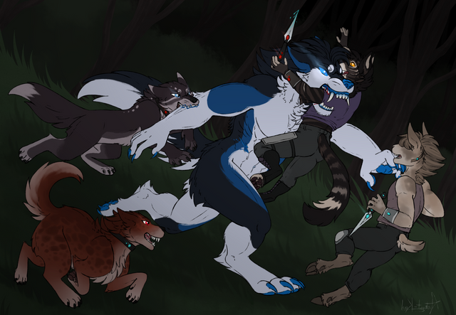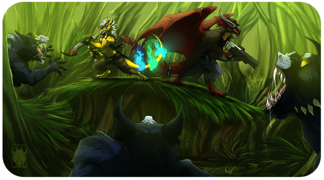 #anthro #ash #comish #commission #deer #devling #dungeon #finished #furry #glow #gun #magic #monster #rabbit #smoke #spells #spirit #tiger #fire #com