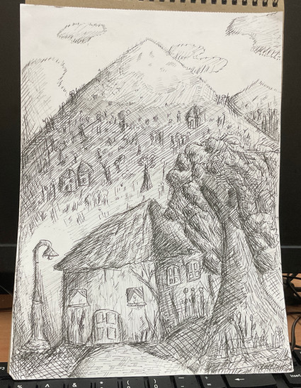 #traditionalart #conceptart #sketch #pencildrawing #handdrawn #sketching #blackandwhite #castle #sketchdrawing #town #detailedartwork