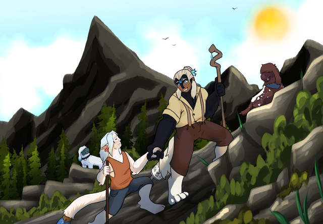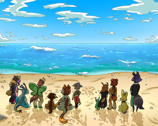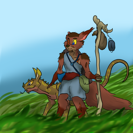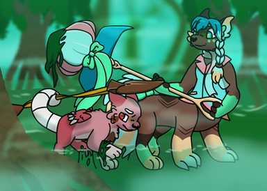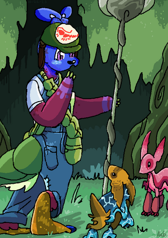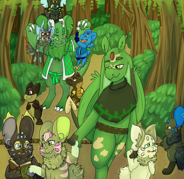 It was a stormy looking day, the sky was grey, the wind was strong, and despite being on an island surrounded by water, everything felt even more humid than usual. Alone on a hill around the middle of the day, two staxies were on the move. One walking on two legs with a cane, the other on six all his own."Hey there!" Chimed another voice, coming out from the forest beside them, it was a face they both knew.